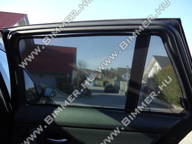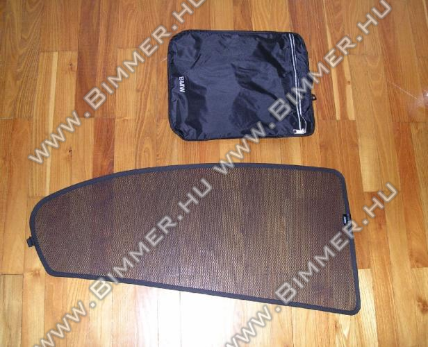 E90 Árnyékoló hátsó ajtókra Állapot: új / gyári Kompatibilitási lista:Oldalsó, felpattintható árnyékoló a hátsó oldalablakokra. A szett jobb és bal oldali árnyékolót és a szükséges rögzítõ patenteket is tartalmazza. Az árnyékoló praktikusan összecsukható, a szettben igényes tároló táska is található.